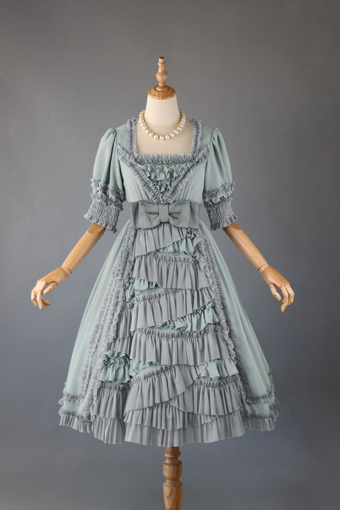 A dress that embodies the grace and tranquility reminiscent of 19th-century bisque dolls,