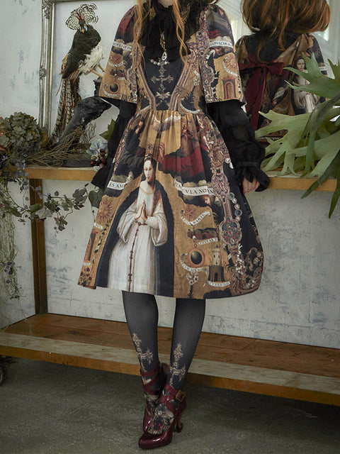 1500年~1700年代の宗教画をコラージュしたドレス。