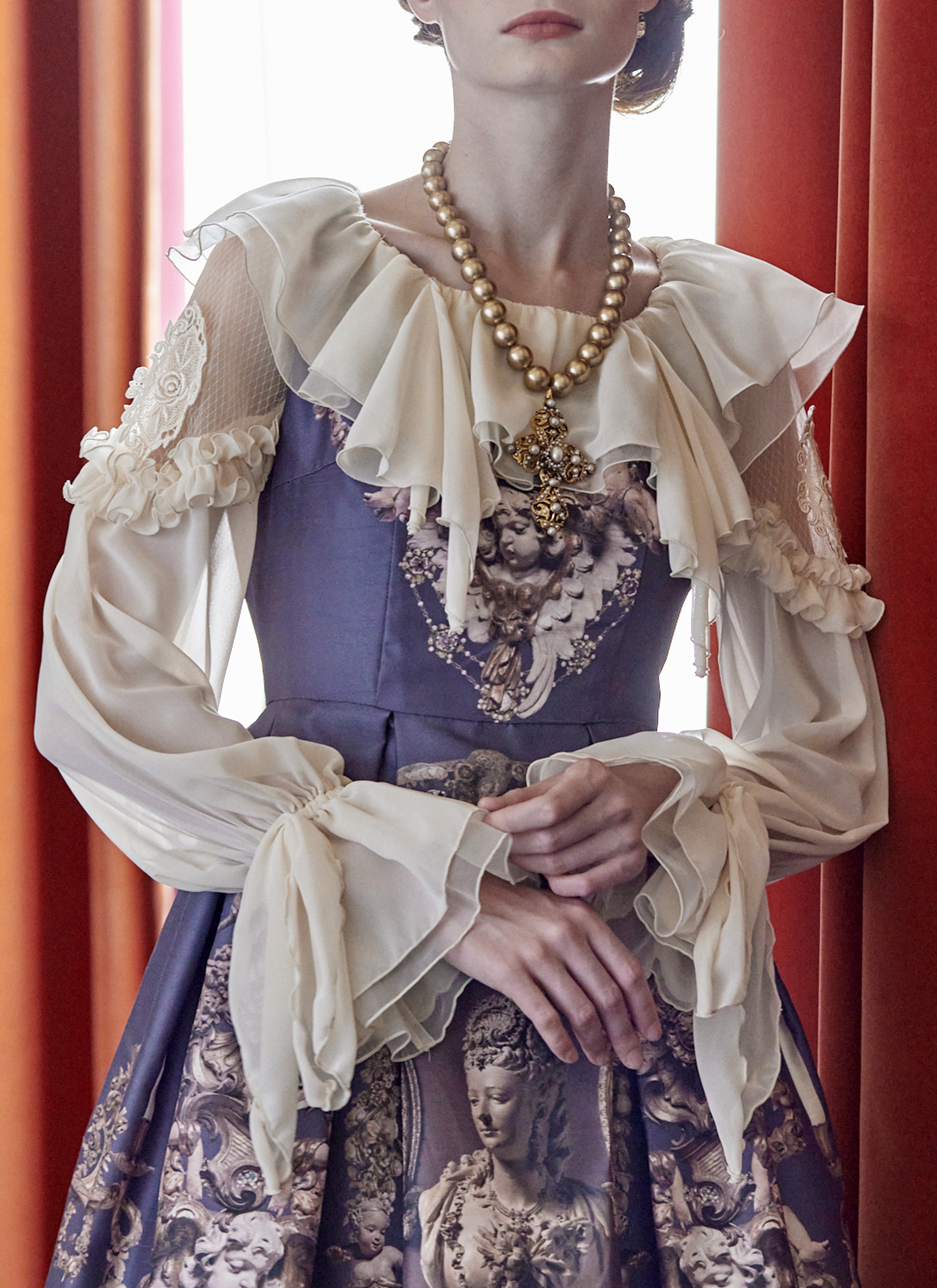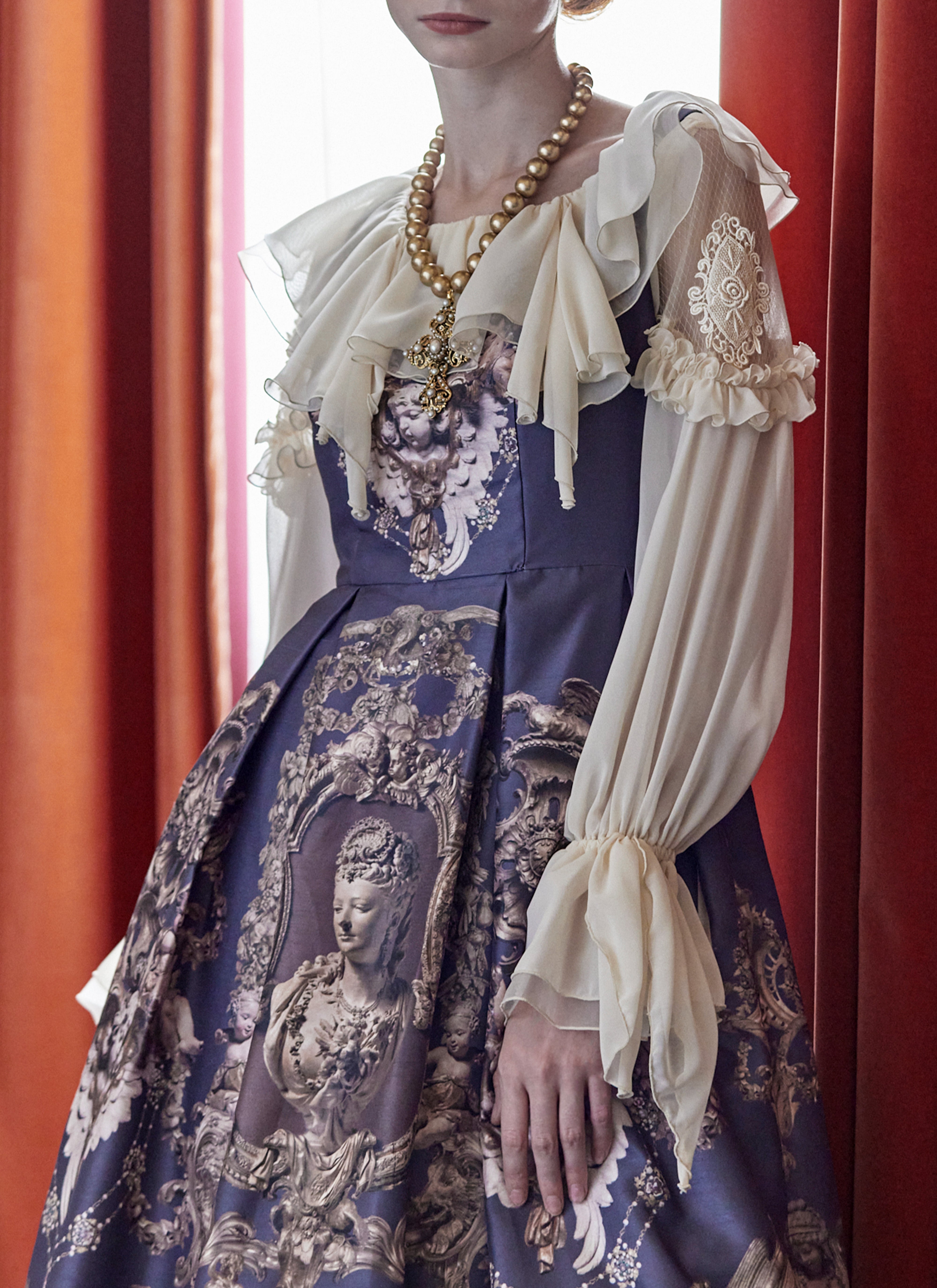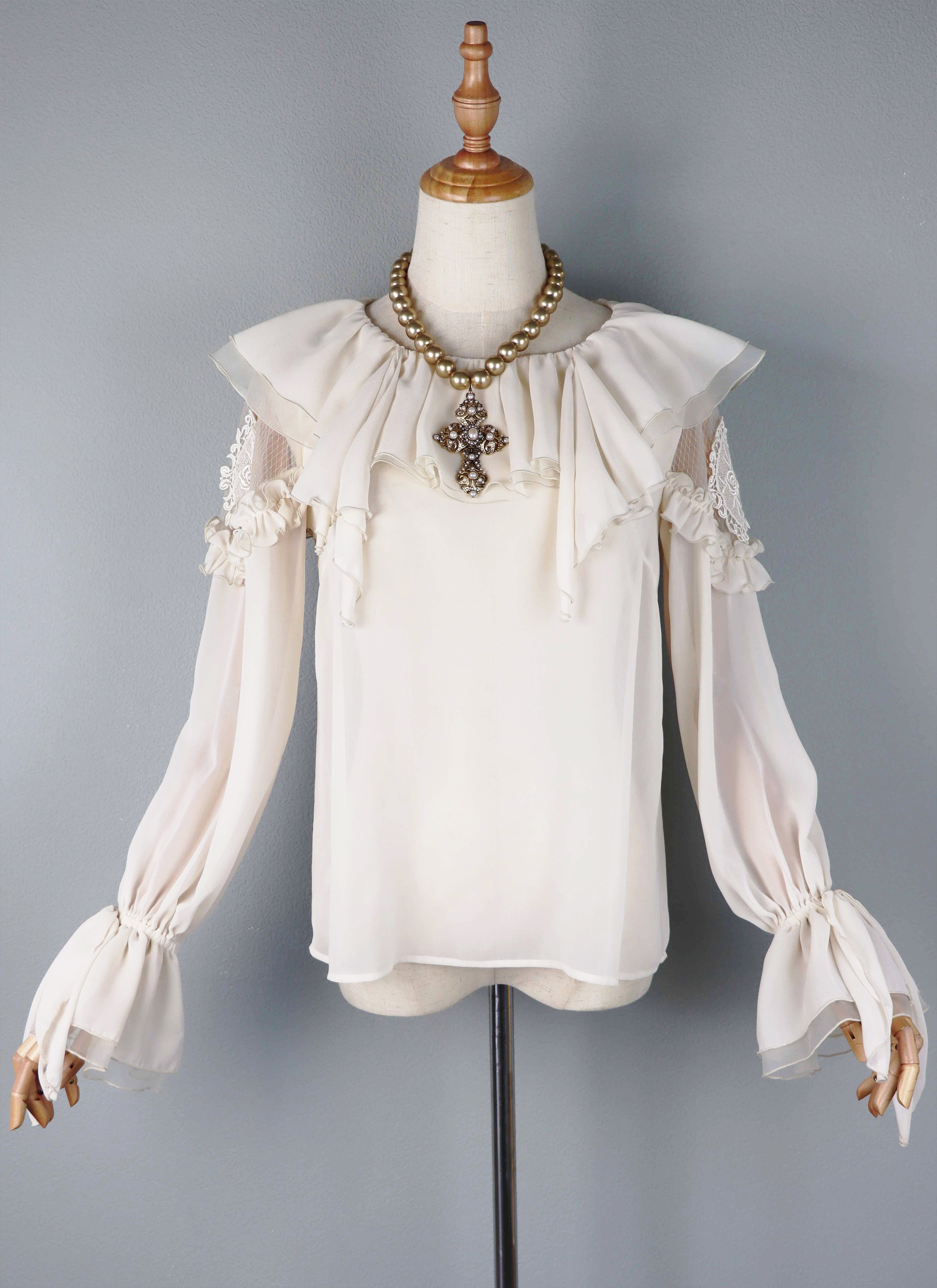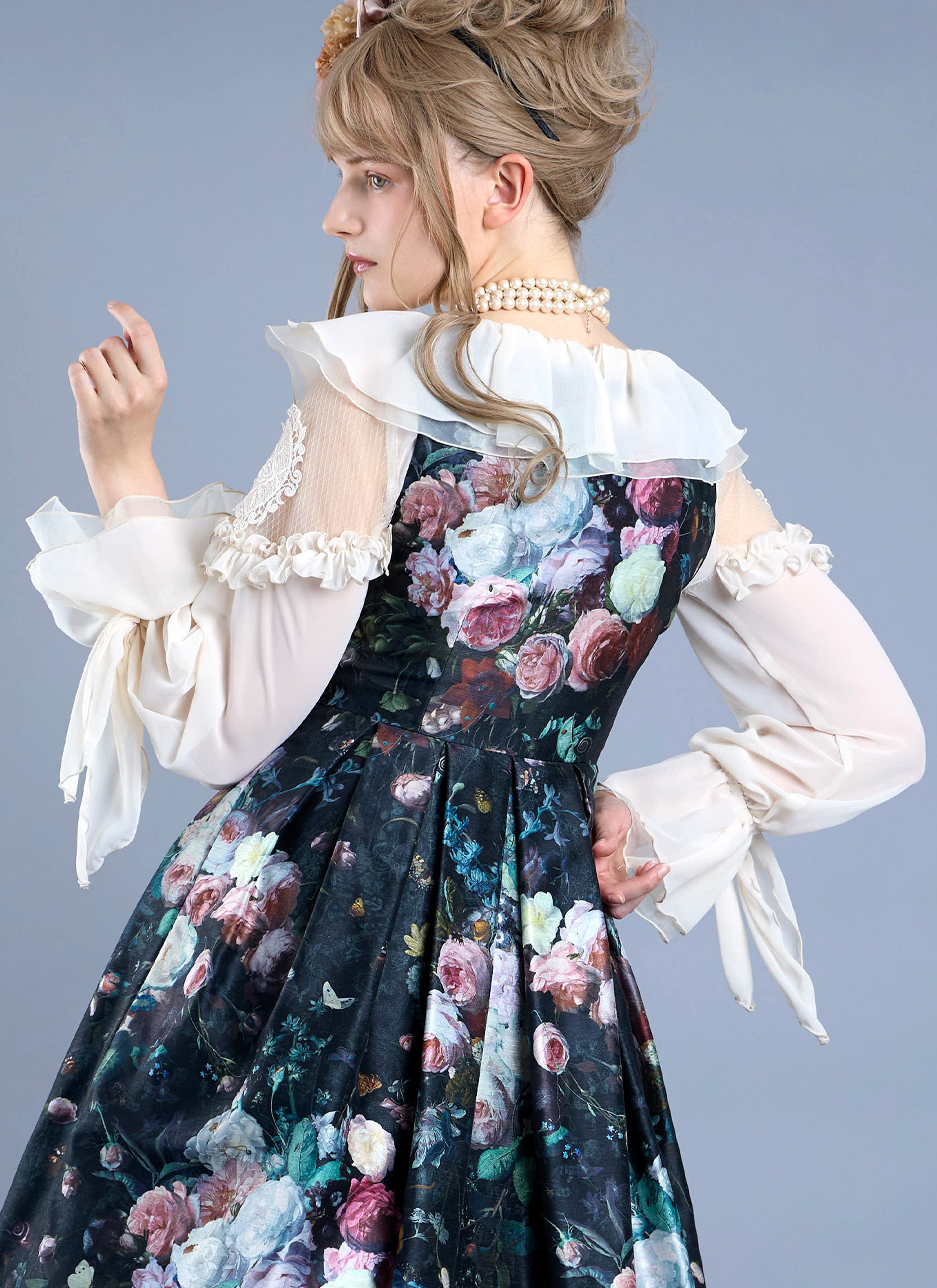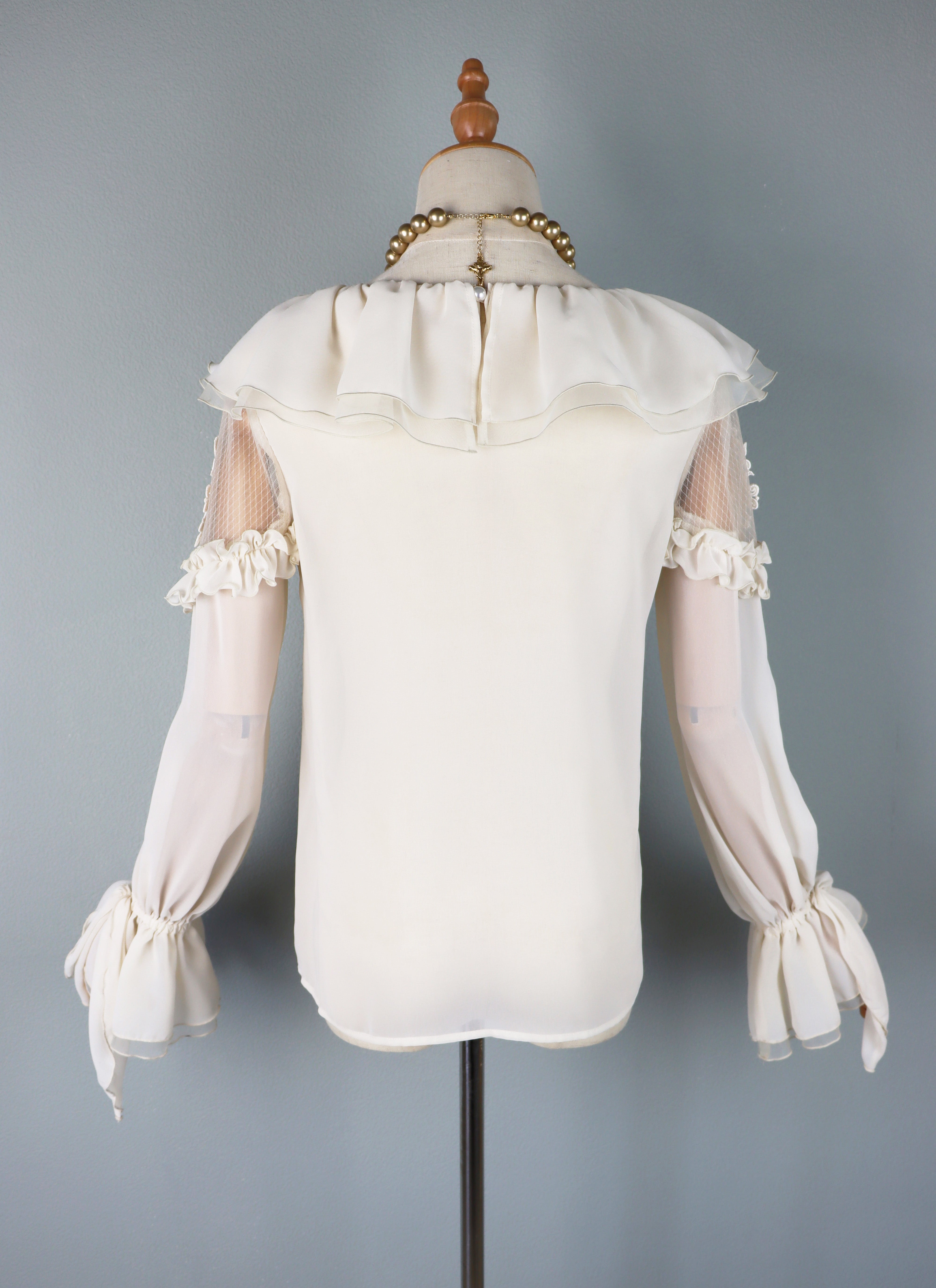 襟は、シフォン×オーガンジーのカスケードフリル。