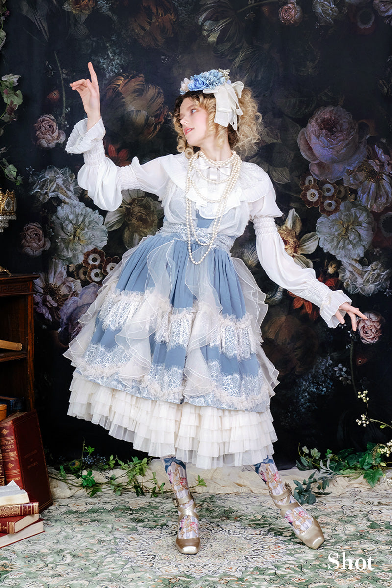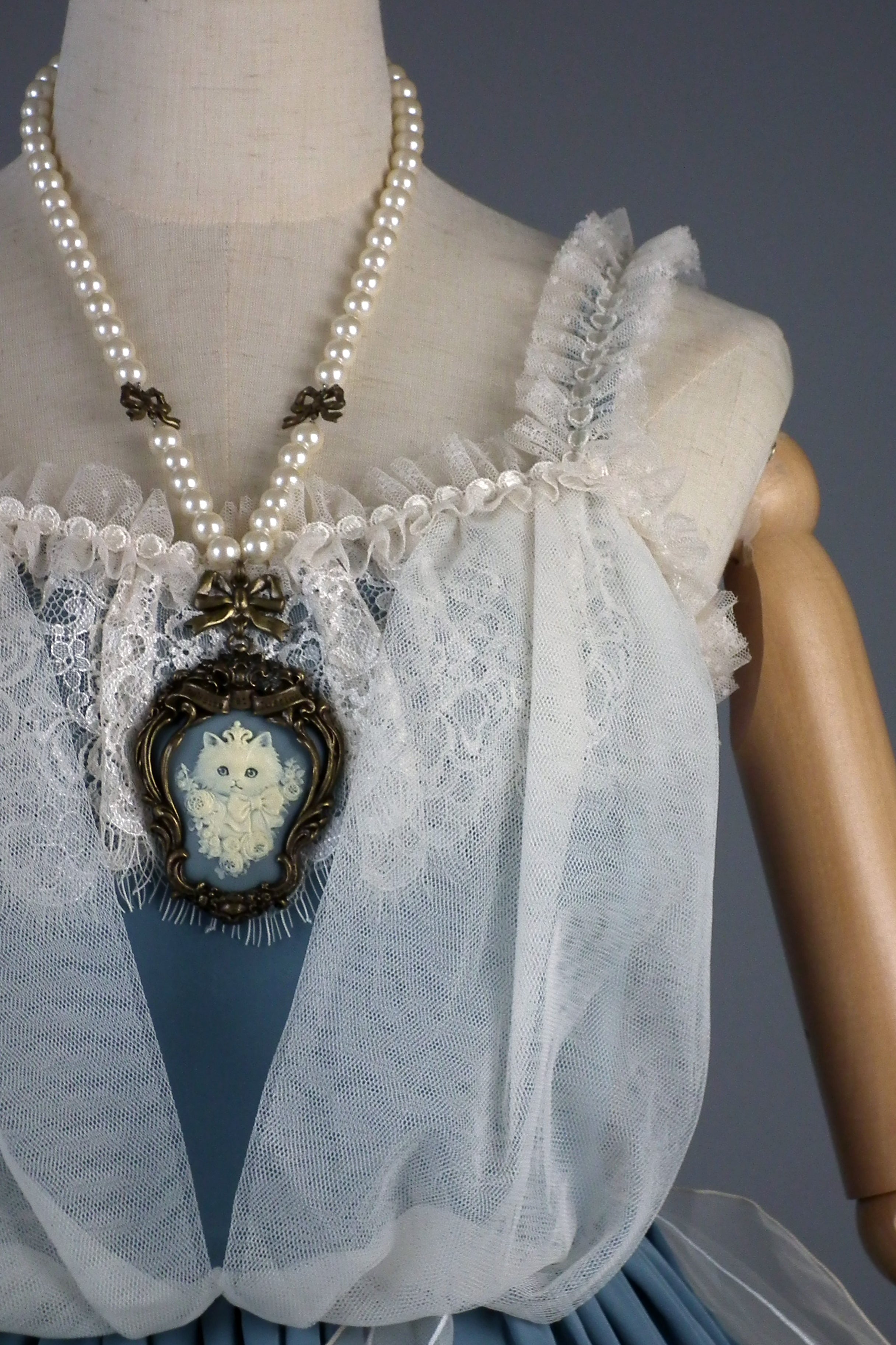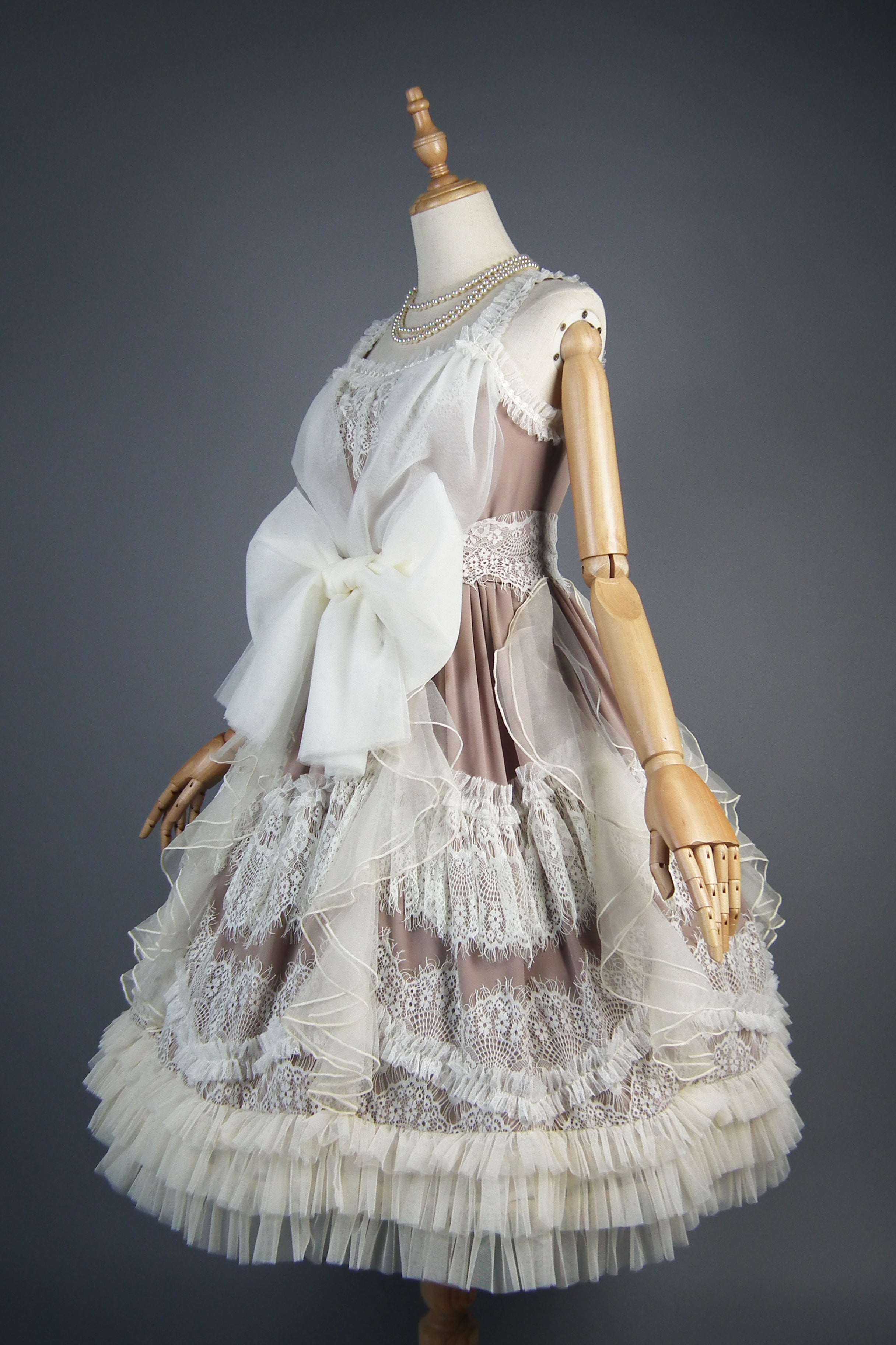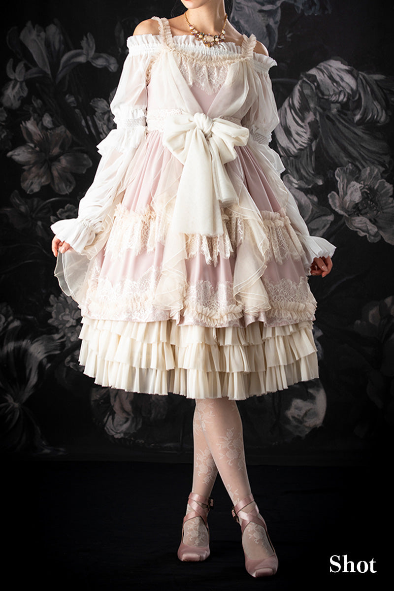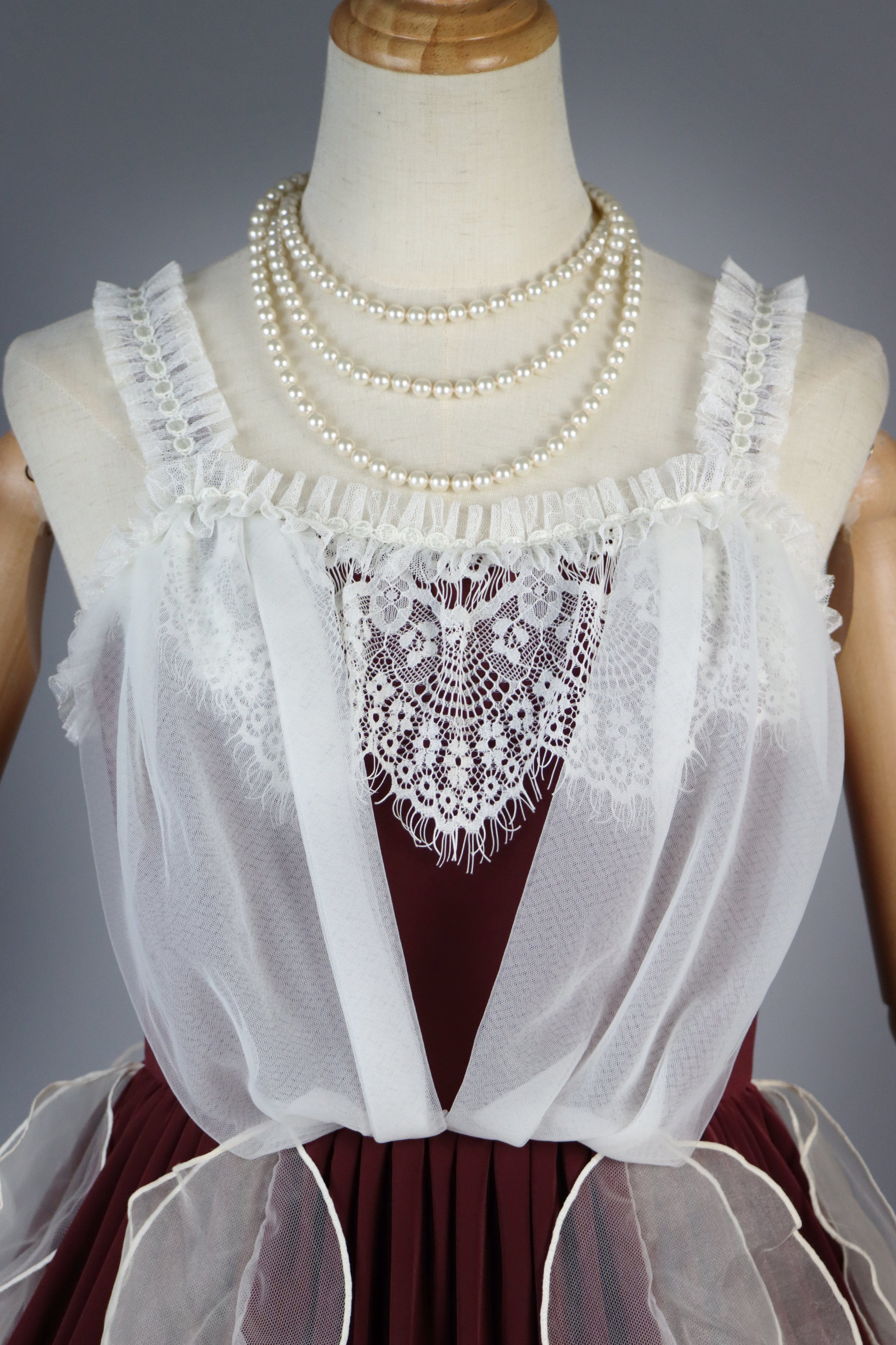 胸元に垂れるチュールは、夢のヴェールのように透け、