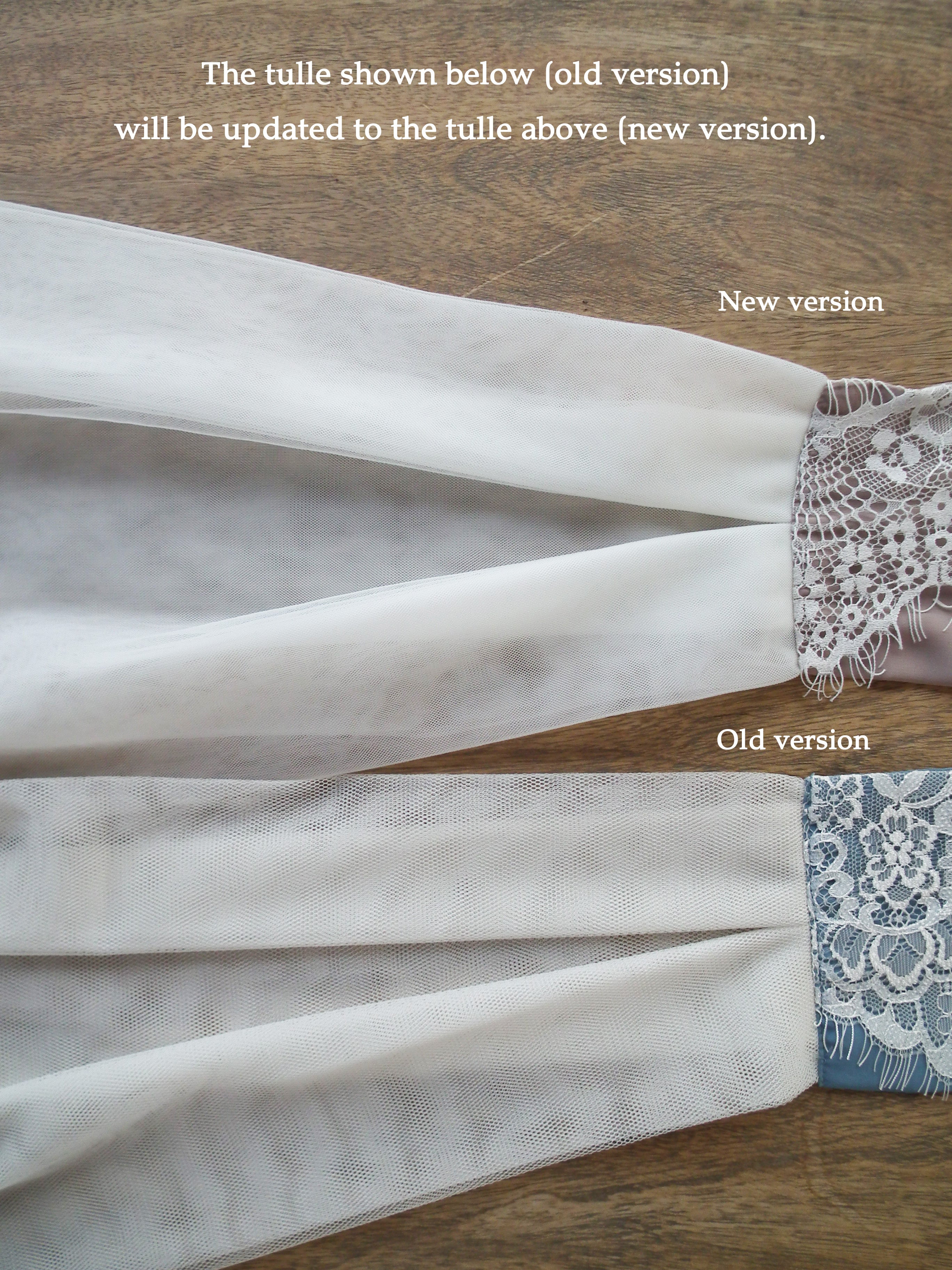 ロングタイプの裾にあしらわれたチュールの新仕様は、
