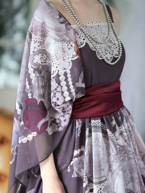 在裙子上印了古董银餐具和蕾丝桌巾的花案。