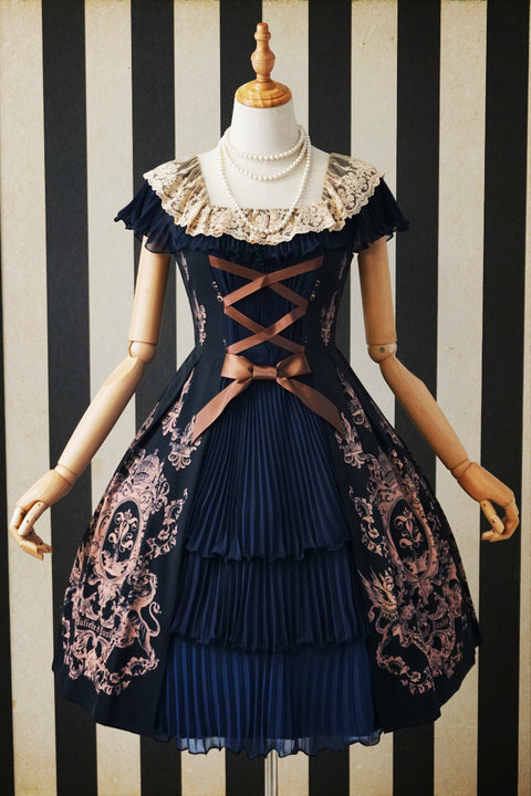 带有品牌标志的经典印花,蕾丝将肩部和胸口华丽装点。