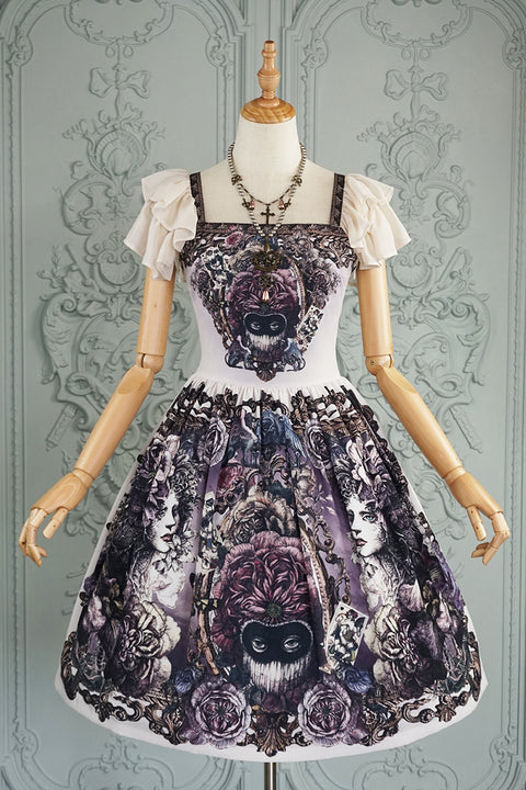 裙子整体的米白色基调使紫色图案更加亮眼的同时,