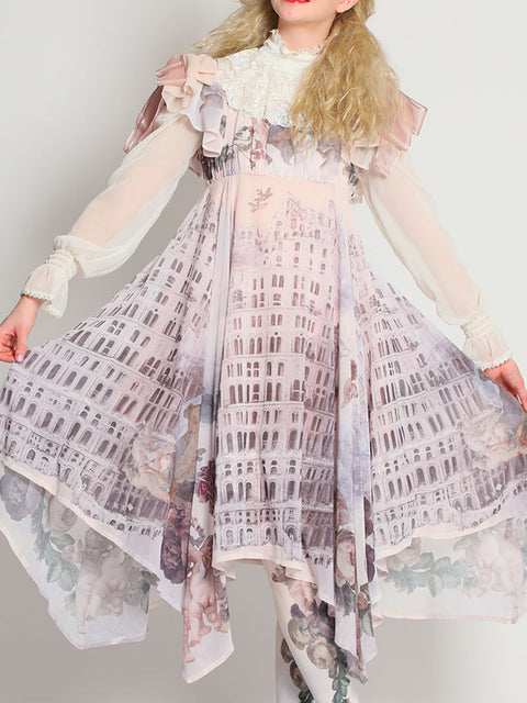 以16世纪的法兰德斯绘画的巨匠老彼得·勃鲁盖尔的“通天塔”为形象设计的连身裙。