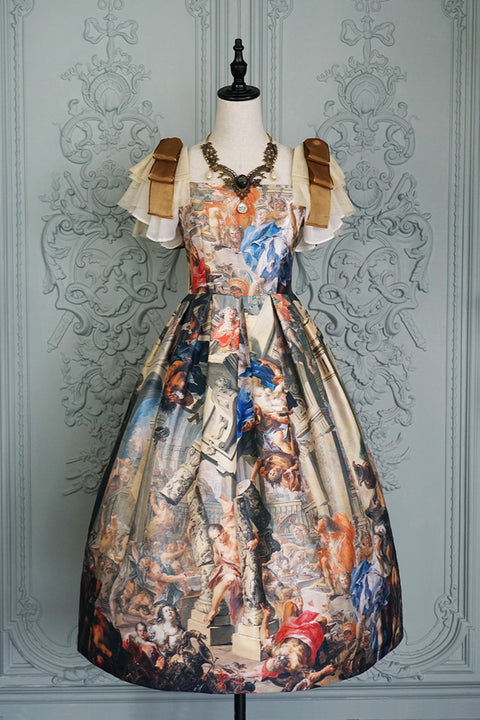 裙面上绘制着充满戏剧张力的场景。