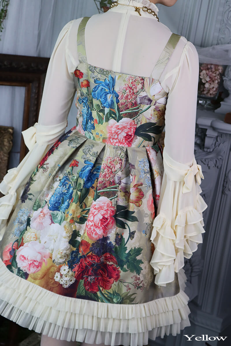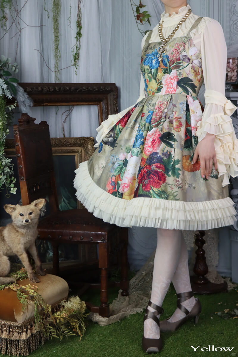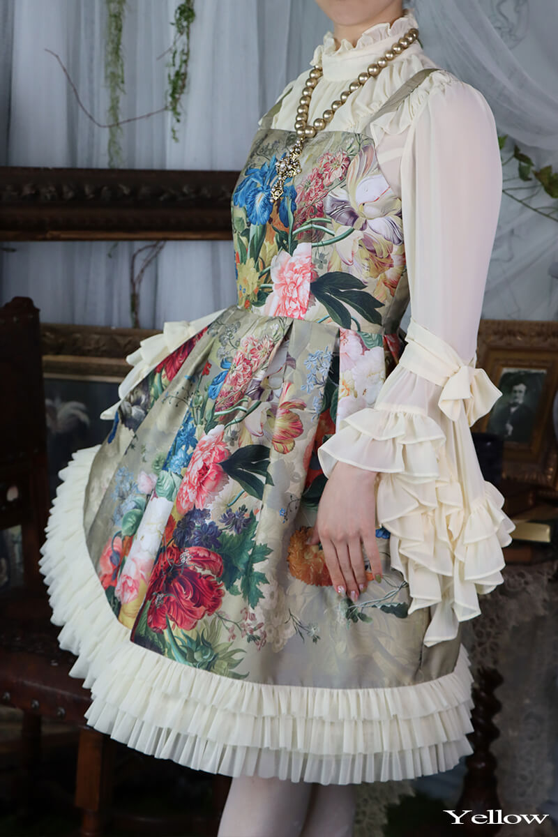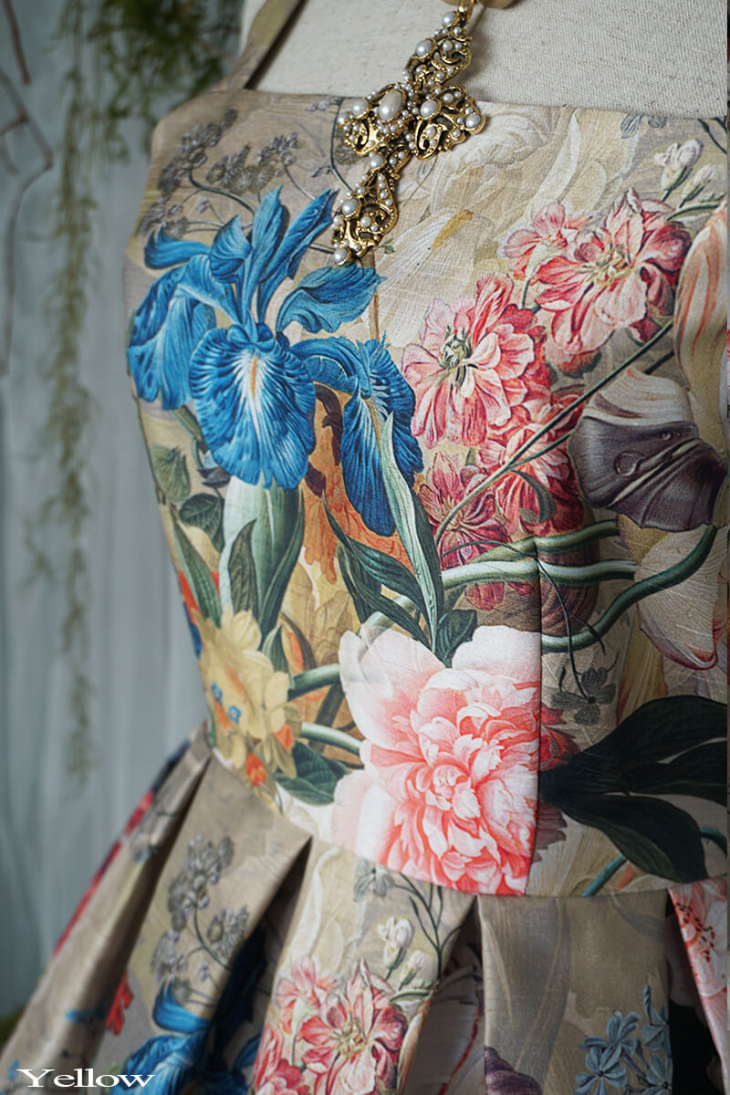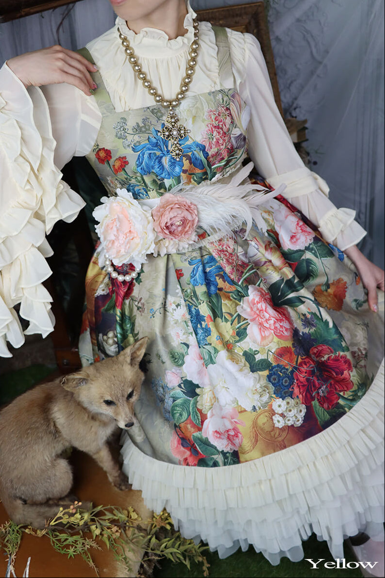 带有相同柄图和褶边的可拆卸缎带腰带,让整体的华丽感UP!