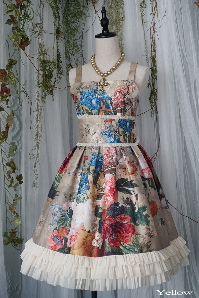 整个都印有经典油画柄图的,瞩目、利落、优雅的特殊礼服。