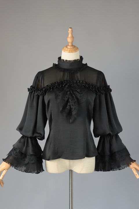 袖口为缎面材料、蕾丝与抽褶装饰的三层结构,